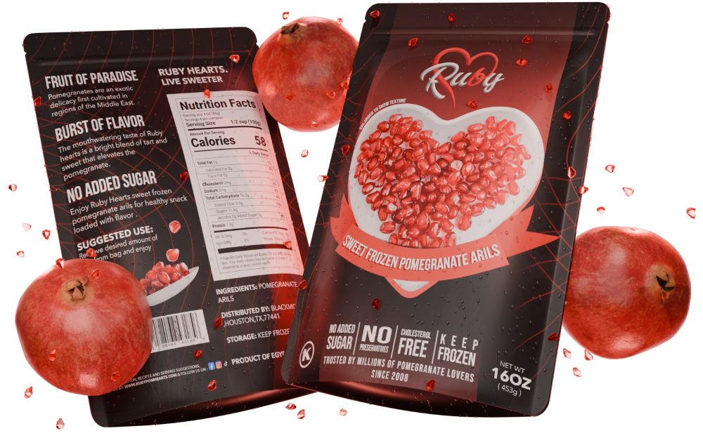 Ruby Hearts was born from a dream that crossed continents. Our founder, an Egyptian entrepreneur with a decade of experience in New York's exigent grocery scene, brings the best of two worlds to your table. Our story begins in Egypt's sun-kissed orchards, where our specialty sweet pomegranates are carefully nurtured.